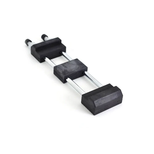 Stone holder with rubber block in middle. Rubber feet with chrome-plated bar arms.