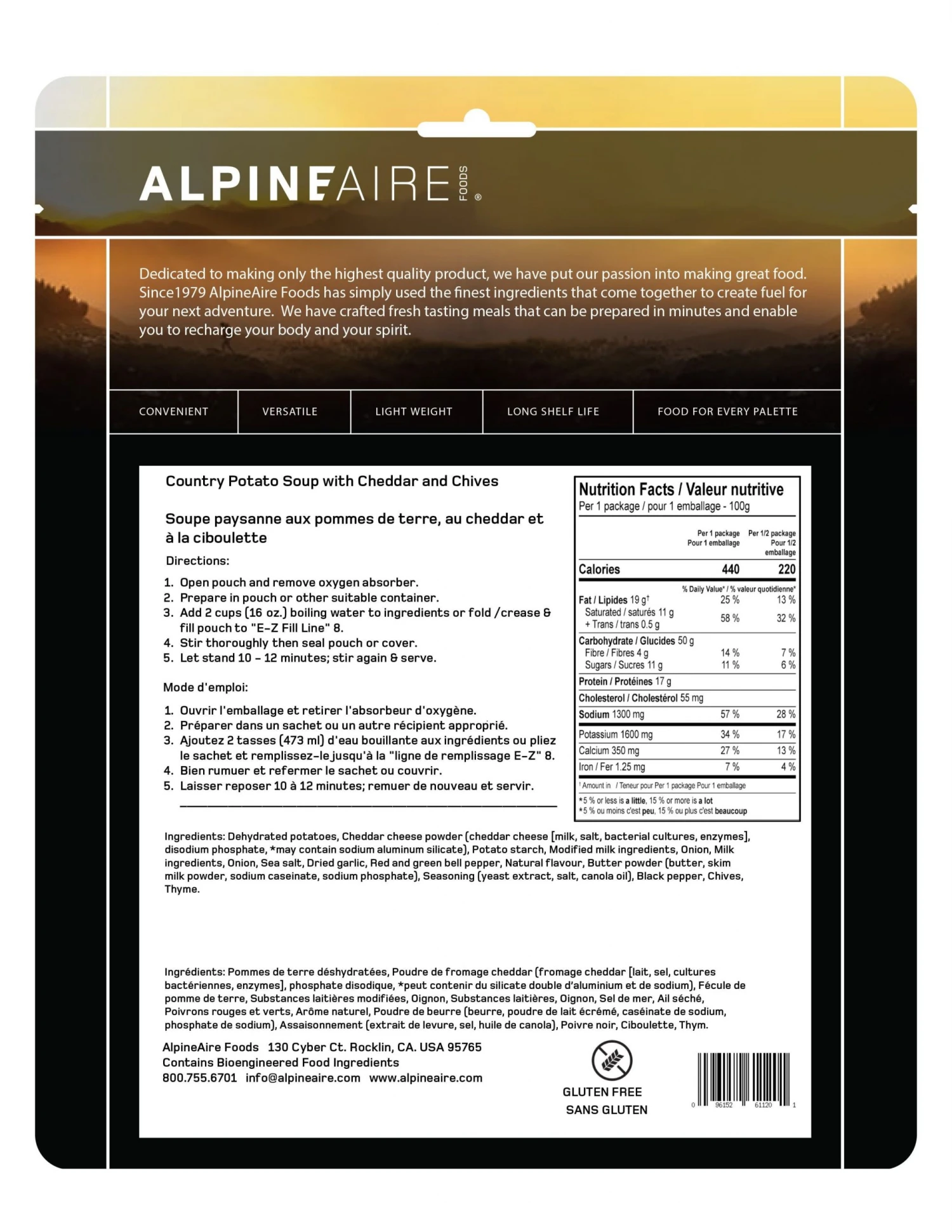 Vegetarian and gluten free creamy potato soup accented with shreds of cheddar cheese and chives with a hint of black pepper.