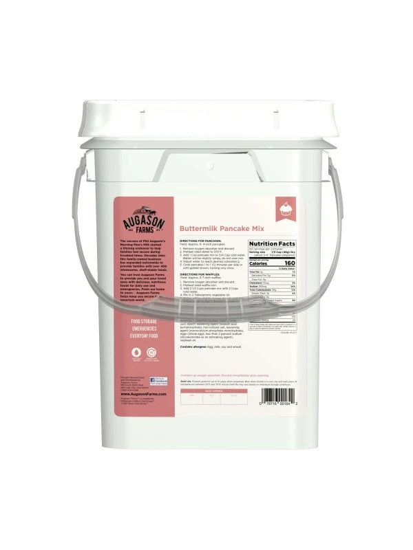 Augason Farms Food Storage Buttermilk Pancake Mix is made from high quality flours that are blended to perfection. All you need to do is add water to prepare them. Full of wholesome goodness and irresistible flavour, a plate of steaming hot buttermilk pancakes with your favourite fruit or syrup generously poured over the top makes a perfect breakfast. Not only can you make tender, light, fluffy, golden-brown pancakes—nearly everyone’s favourite—consider also using the Buttermilk Pancake Mix to easily and quickly make waffles, biscuits, muffins, sweet banana bread and scones. In fact, Buttermilk Pancake Mix is commonly referred to as the Swiss Army Knife of food storage.