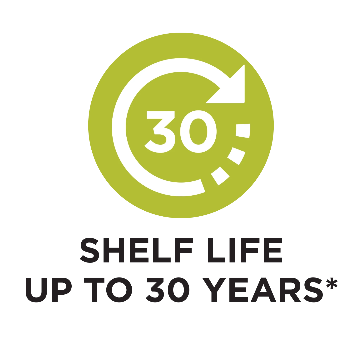 *Product good up to 30 years when unopened. Best when stored in a cool and dry place at temperatures between 55° F and 70° F. Actual shelf life may vary based on individual storage conditions.
