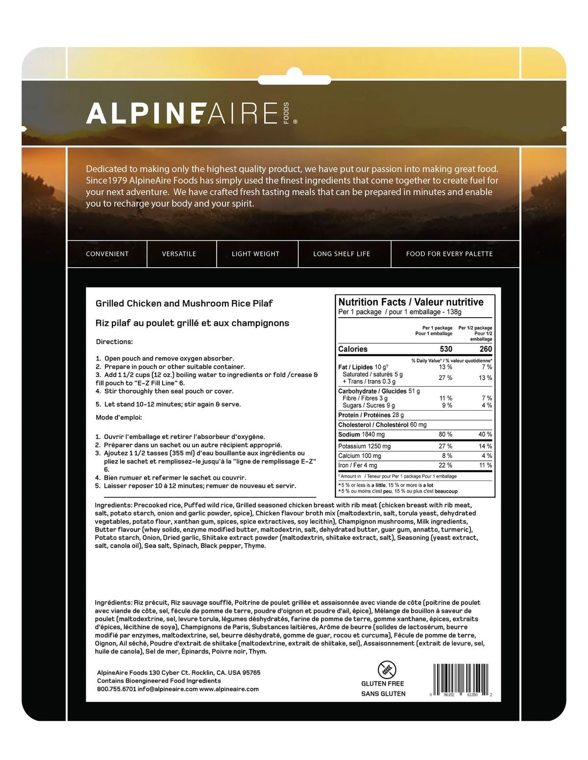 White meat chicken and mushrooms in a creamy, savoury sauce with cooked wild rice and herbs.