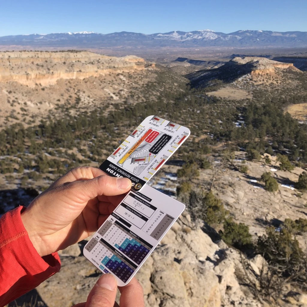 This set was created to be used with any map and compass and also stows neatly in the rubber foot of the TruArc20 (not included). They contain essential references and tips and techniques for efficient and safe wilderness travel. Our cards can help you calculate and determine distance and location on a variety of topo maps and will give you many of the basic tools and concepts that can help you make better decisions in the backcountry.