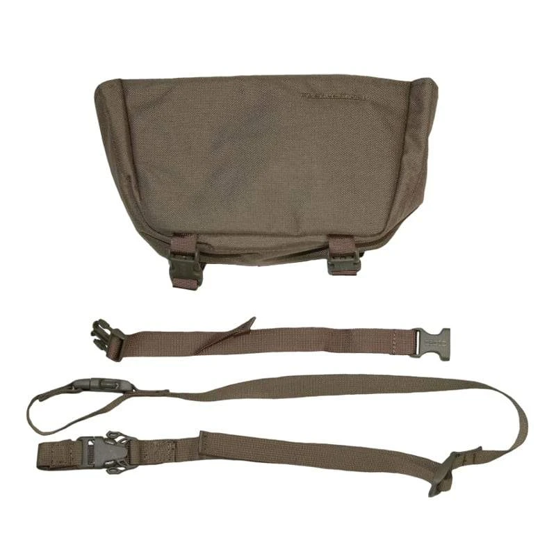 The ButtBucket is a universal compound bow or rifle carrier, made to mount onto Eberlestock packs that don’t already have a built-in bow carrier. It comes with self-mounting straps that allow you to attach it to a packs MOLLE/PALS-type webbing matrix, the lower compression strap on packs that have them, or to the frame of the F1 Mainframe pack.