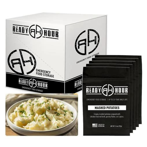 Ready Hour Mashed Potatoes are a perfect addition to your family meal. Use them as a side dish, to top your Shepherd’s Pie, or as your main dish with meat and gravy on top. Our mashed potatoes lasts up to 25 years unopened, and one year once you open the can. Store it in a cool, dry location where temperatures stay between 55 and 75 degrees for optimal longevity.Â