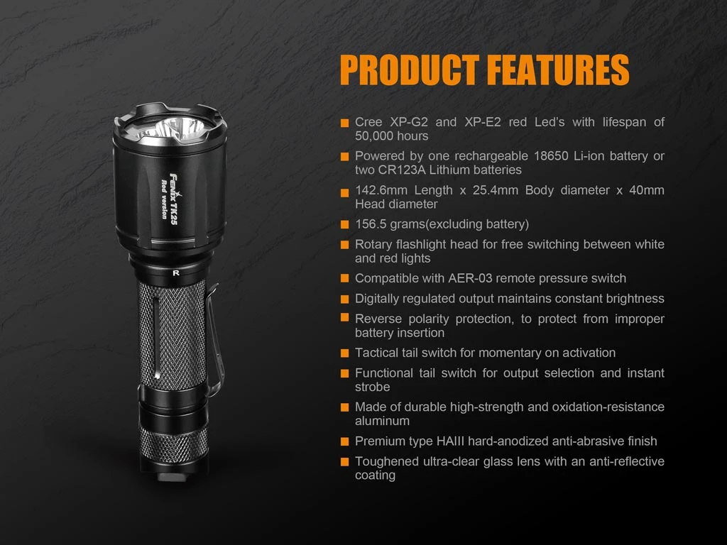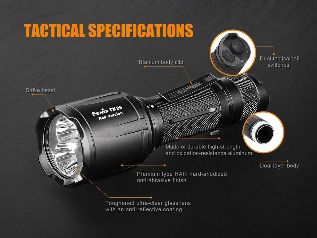 - 1 x Fenix TK25 RED Flashlight