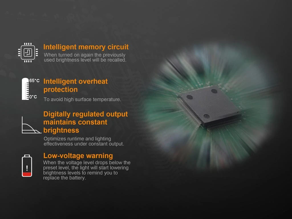 - Digitally regulated output maintains constant brightness