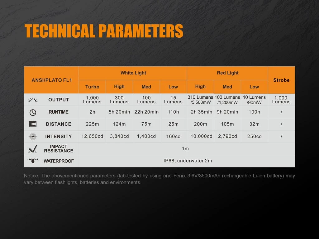- Cree XP-G2 white LED and XP-E2 red LED’s with lifespan of 50,000 hours