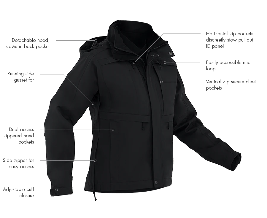 The Women’s Tactix Series System Jacket is the ultimate go-to for all of your tactical jacket needs. The outer shell is 100% waterproof, breathable, bloodborne pathogen resistant, fully seam sealed wind resistant nylon, designed to move and breathe while keeping you guarded from the elements. The design is cut specifically to fit a woman’s body, and a revolutionary 3-way adjustable hood design and a zip-in SoftShell give this jacket the edge you need in the field.