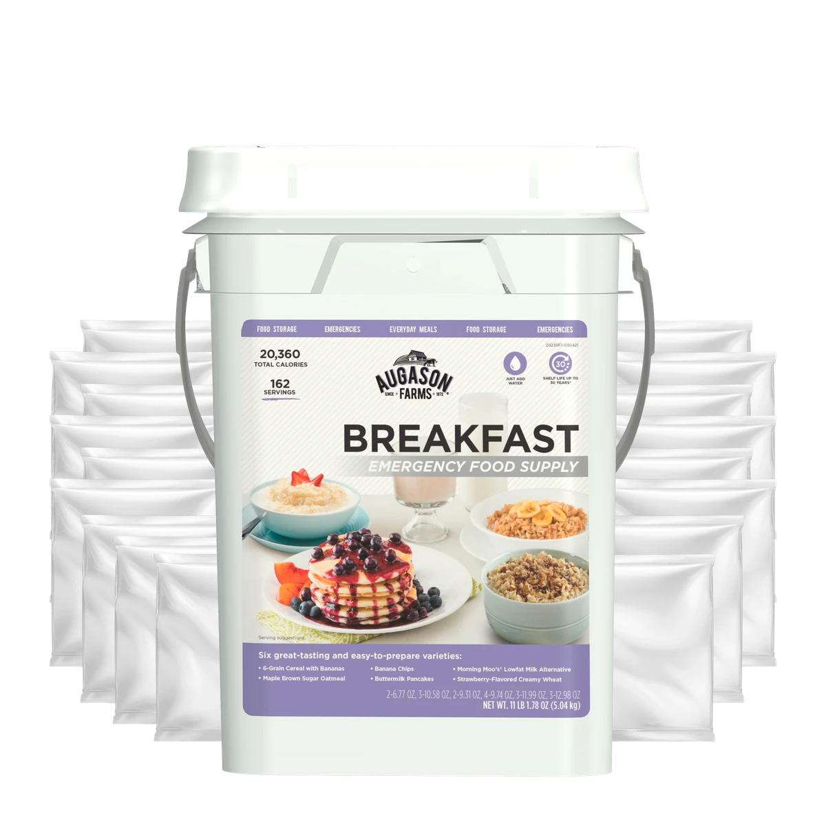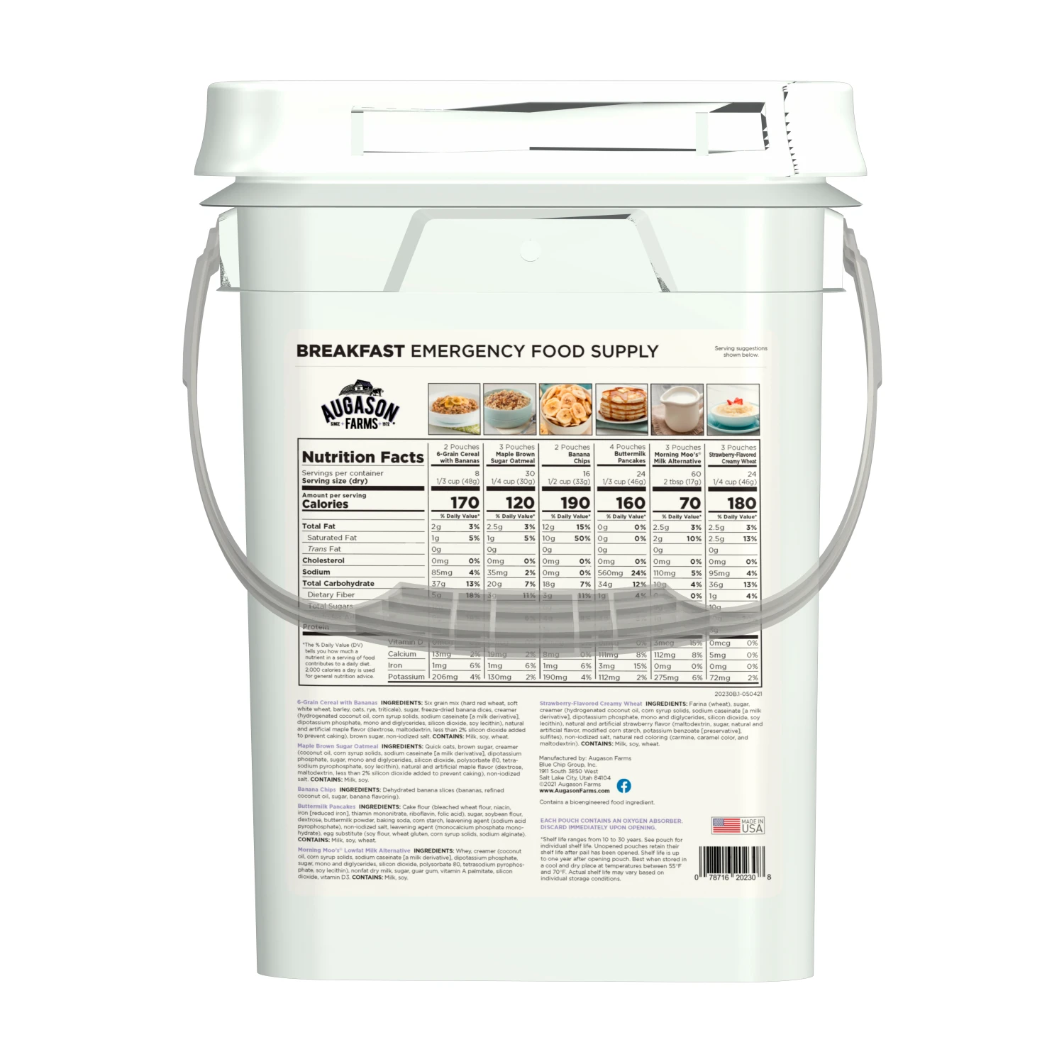 This 4 gallon emergency food kit includes some of the most popular breakfast entrees and a delicious dry powdered milk drink, Morning Moo’s Low Fat Milk Alternative. Whether you are hiking, need a quick breakfast, or are caught in an emergency, this Emergency Food Supply Breakfast Pail is packed with nutrient rich emergency foods perfect for any life event.