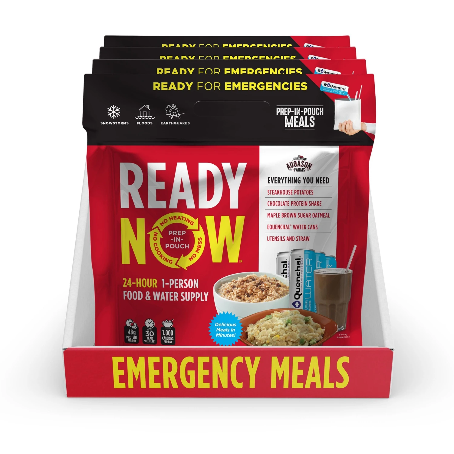 READY NOW survival food and water pouches also make ideal camping mess kits. Whether you explore the outdoors in a trailer, cabin, or on foot, these all-inclusive food and water pouches are lightweight (under 4 lb.), compact, and can be stored virtually anywhere. As a bonus, aluminum cans are infinitely recyclable; when they’re empty, just crush them, stash them away, and toss them in the recycling bin.