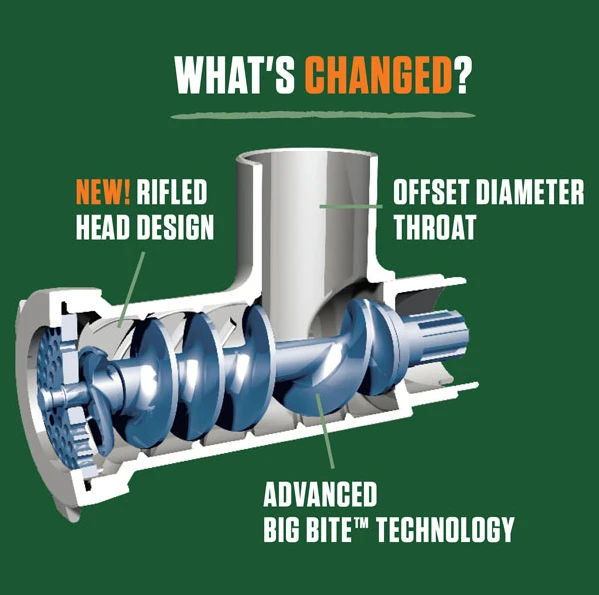 Our exclusive Big Bite technology allows the auger to take an extra big bite of meat and then move it into the grinder head quicker than other grinders. The benefit? You grind larger cuts of meat faster without clogging up the machine! A premium grind in half the time!Â