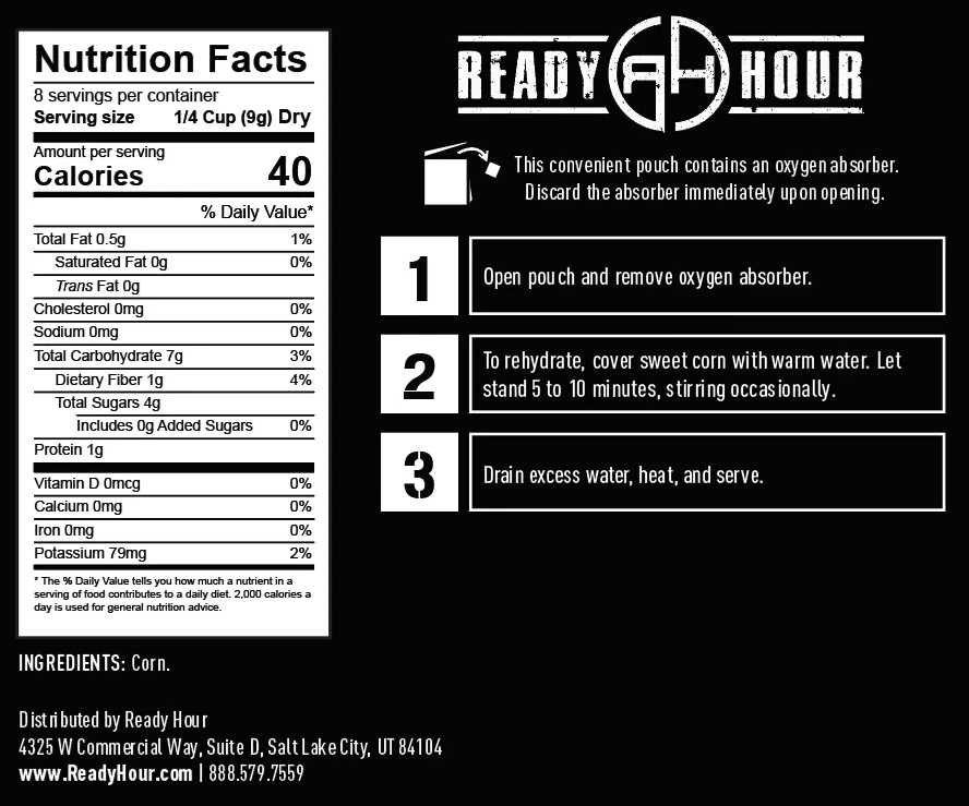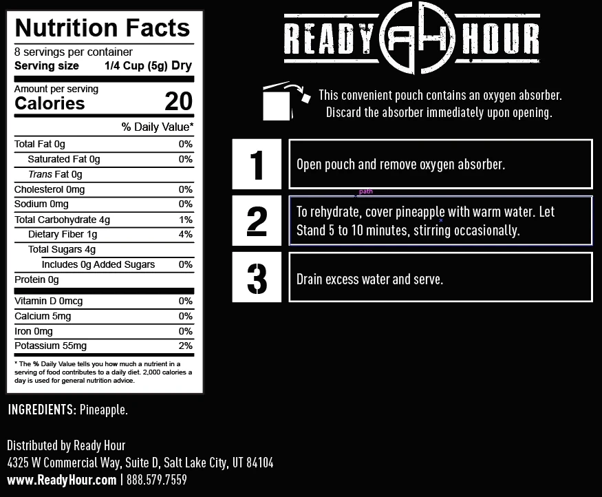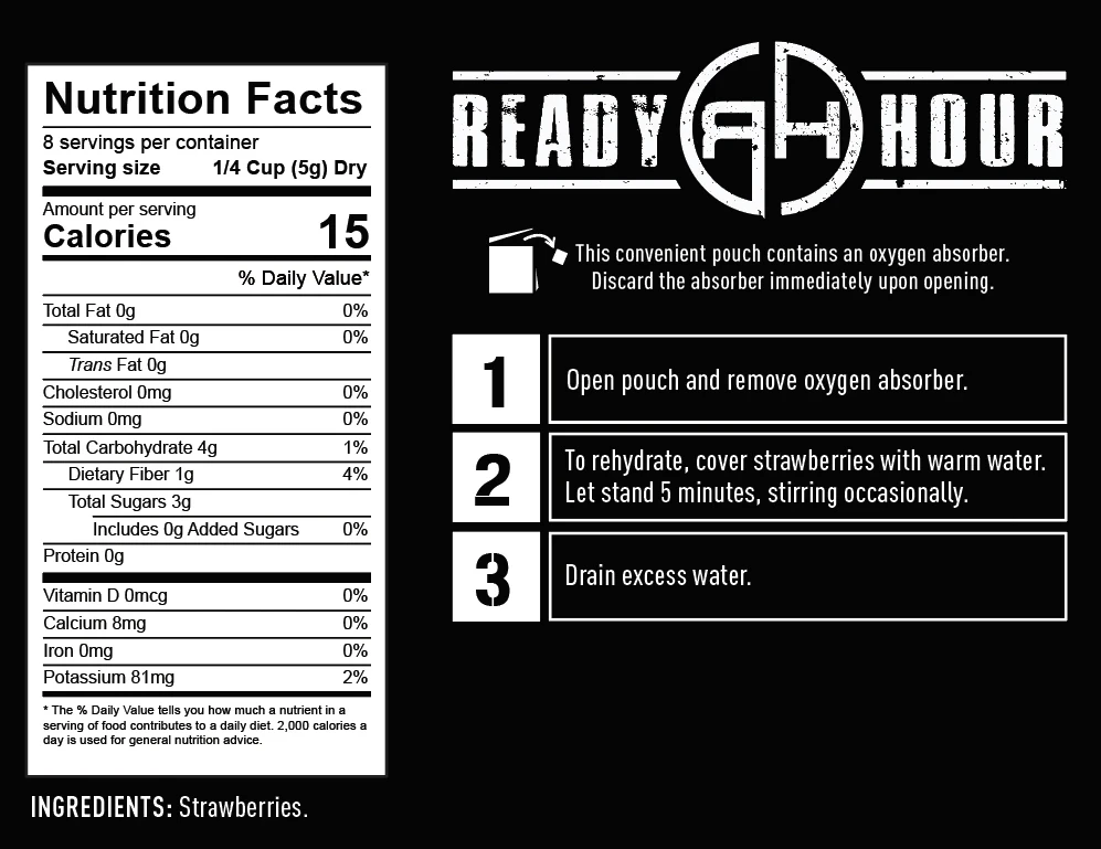 Ready Hour knows how to put together a kit that is delicious and nutritious for your emergency food supplies. The Fruit, Veggie and Snack Mix provides 116 servings of healthy, delicious fruits, vegetables and snacks that last up to 25-years in storage.Â