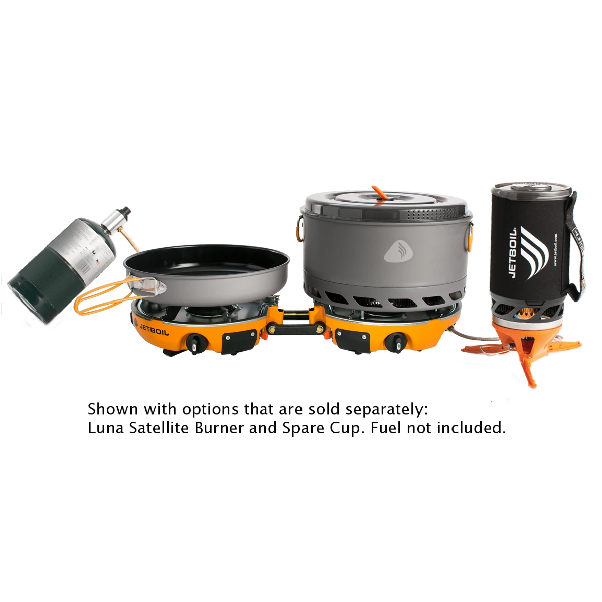 The Genesis Basecamp System is the ultimate all-in-one backcountry cooking system, stowing neatly into itself and fitting snugly among your gear. Jetboil’s dual-burner design functions as a standalone stove, or couples with other Jetlink-compatible stoves or a Luna satellite burner to create an outdoor cooking range. The system’s 5-litre Jetboil FluxPot and 10-inch ceramic-coated nonstick fry pan give you everything you need to set a new benchmark for basecamp cooking.