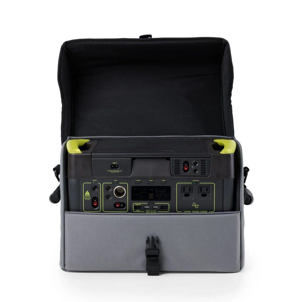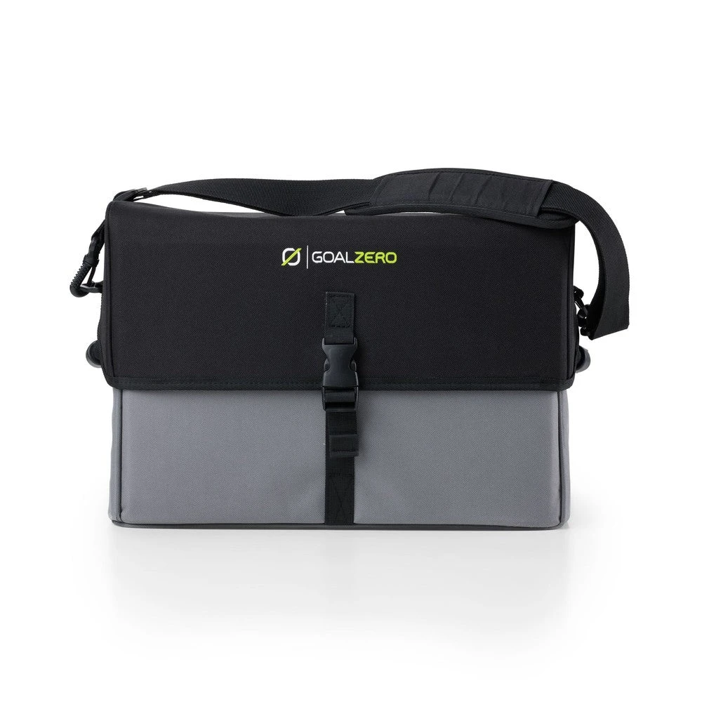 Keep your Yeti Lithium power station safe during transportation and out of the elements with a sturdy case. Features a shoulder strap for carrying and buckles for securing. Does not provide a waterproof enclosure for the Yeti.