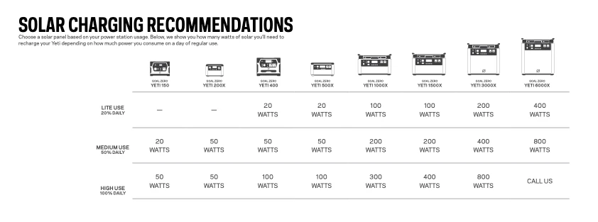 Charge the Yeti 200X from the sun with our portable solar panels while away from the grid and keep it topped off from a wall outlet when you’re home.