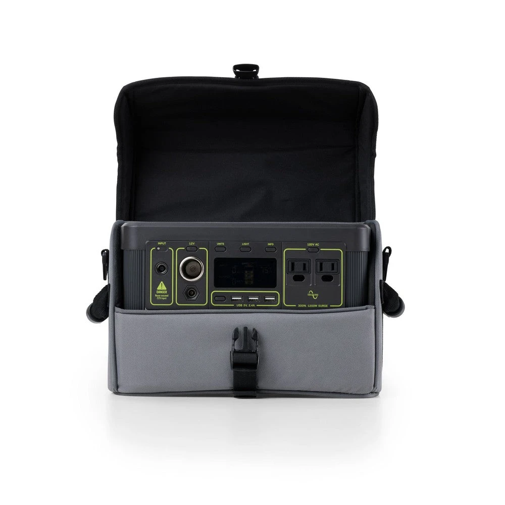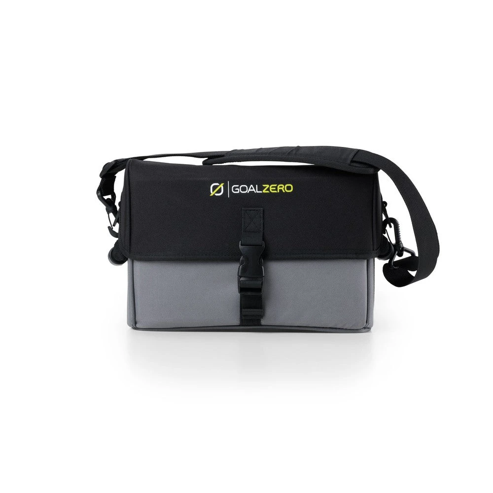 Keep your Yeti Lithium power station safe during transportation and out of the elements with a sturdy case. Features a shoulder strap for carrying and buckles for securing. Does not provide a waterproof enclosure for the Yeti.