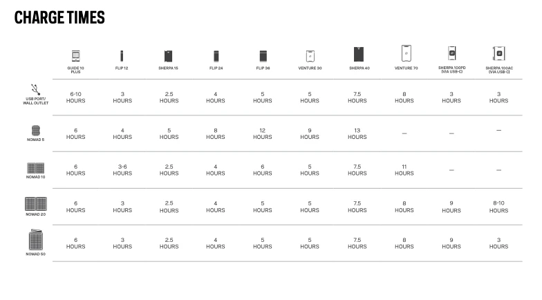 *Solar charge times vary and are dependent on many factors such as elevation, temperature, time of year, angle and position to the sun.