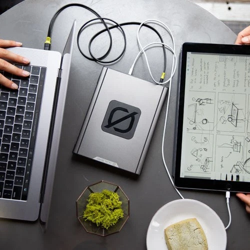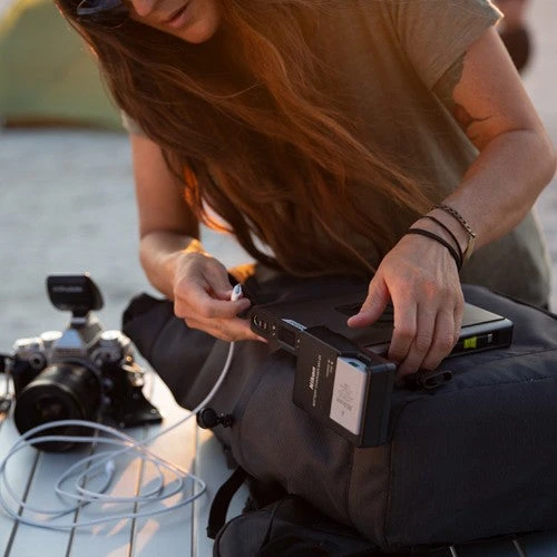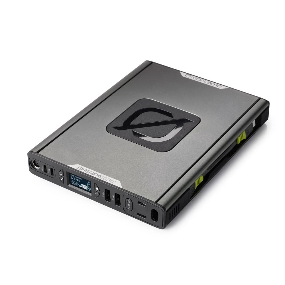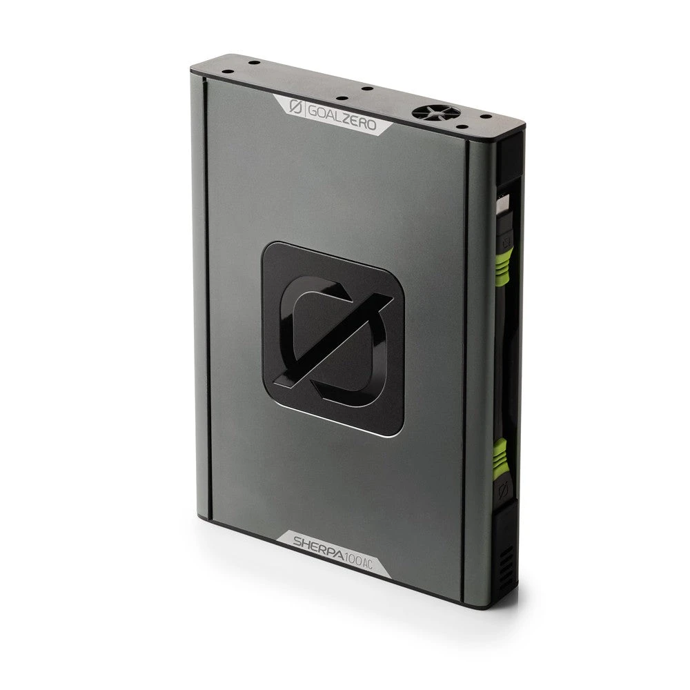 Sleek and powerful, the Sherpa 100AC is your go-to source for versatile power while on the move. Airline approved and travel ready, the 94.72Wh power bank is equipped with innovative features like wireless charging, high-speed Power Delivery, and a variety of ports to power phones, tablets, DSLR cameras, and laptops—including power-hungry MacBooks.