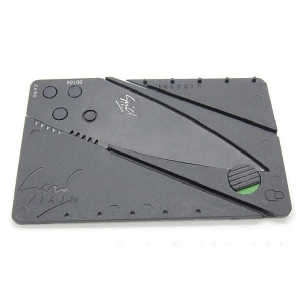 This compact foldable credit card knife is designed to easily slip into your wallet. This way you can always be prepared. Folding safety feature. Blade made of stainless steel.