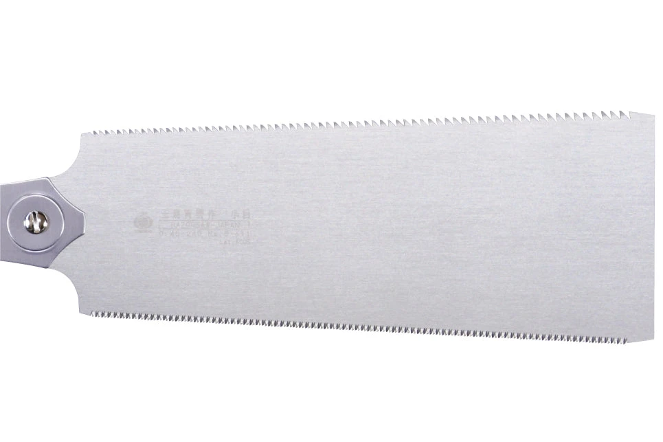 Double edge saw has cross cut teeth on one side and rip cut teeth on the other. With very thin blade and edges on rip cut teeth, you can make very clean cuts. Used to cut though Particle board (OSB), MDF panel, General timber, Bamboo material, Laminated wood, and Composite wood panel