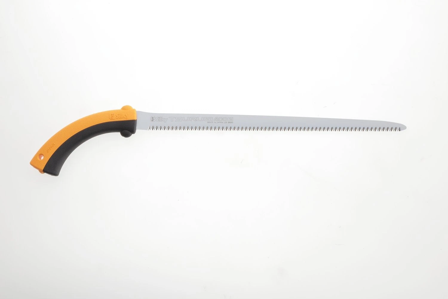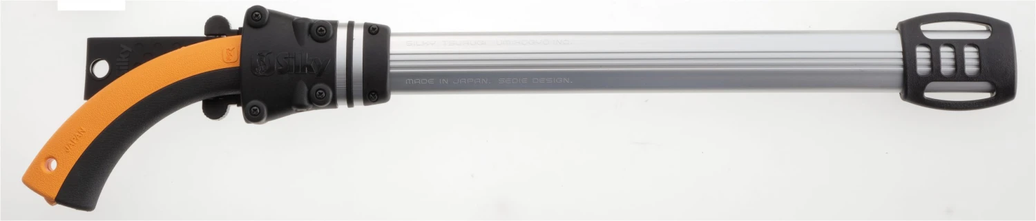 Thanks to Silky’s creative team, the TSURUGI comes to market as perhaps the lightest weight, best balanced “big saw” ever produced, having no handle screws, nuts or extraneous hardware to keep it together. The comfortable, 2-part rubber grip is held together by an ingenious integration with the blade tang. And as if the saw alone weren’t enough, each Silky TSURUGI handsaw comes in a unique aluminum scabbard that can be attached to the belt or leg depending on the users preference and has eight rollers protecting the entryway.