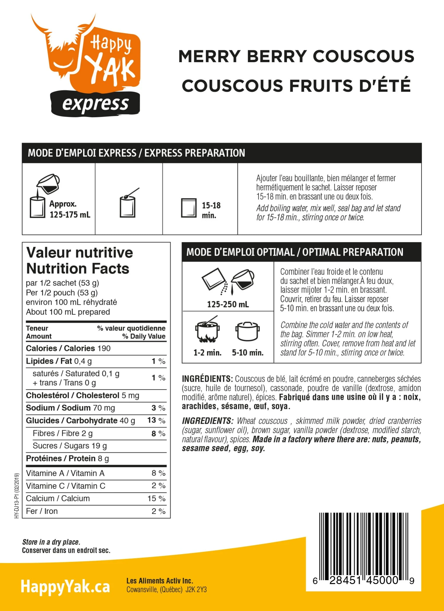 Find the freshness of summer berries wherever you are. Serve this tasty Merry Berry Couscous as a cereal at breakfast or as a dessert at the end of the meal. Cold or hot, you’ll see, you’ll love it!