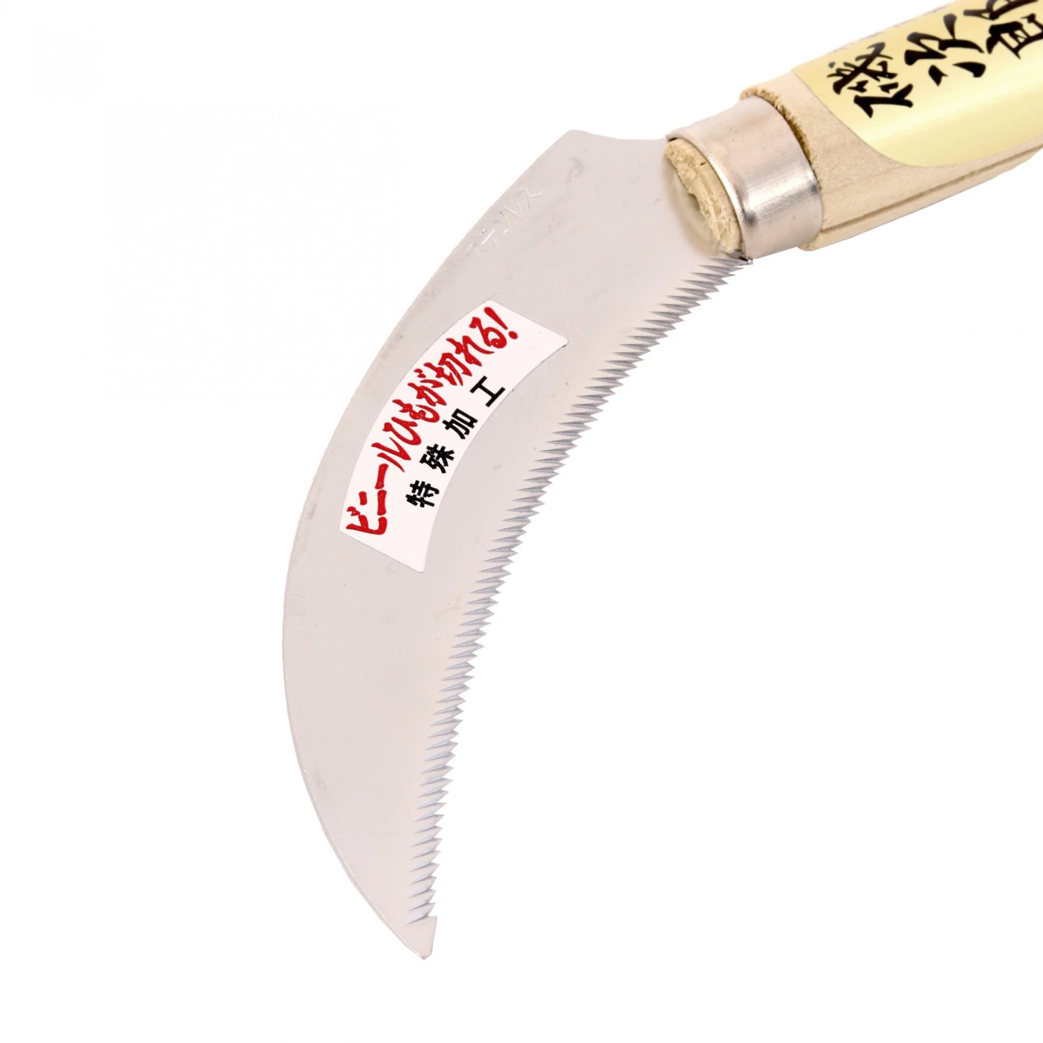 Small stainless steel weeding sickle. Can be used to cut rope, including plastic rope.