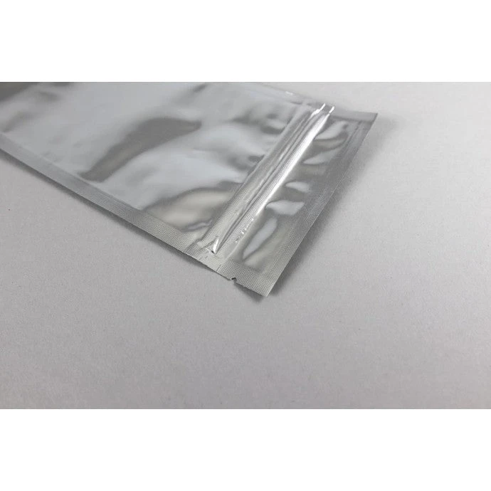 3.5″ x 6.75″ OD MylarFoil pouch with tamper evident ZipSeal and tear notch; 100 bags