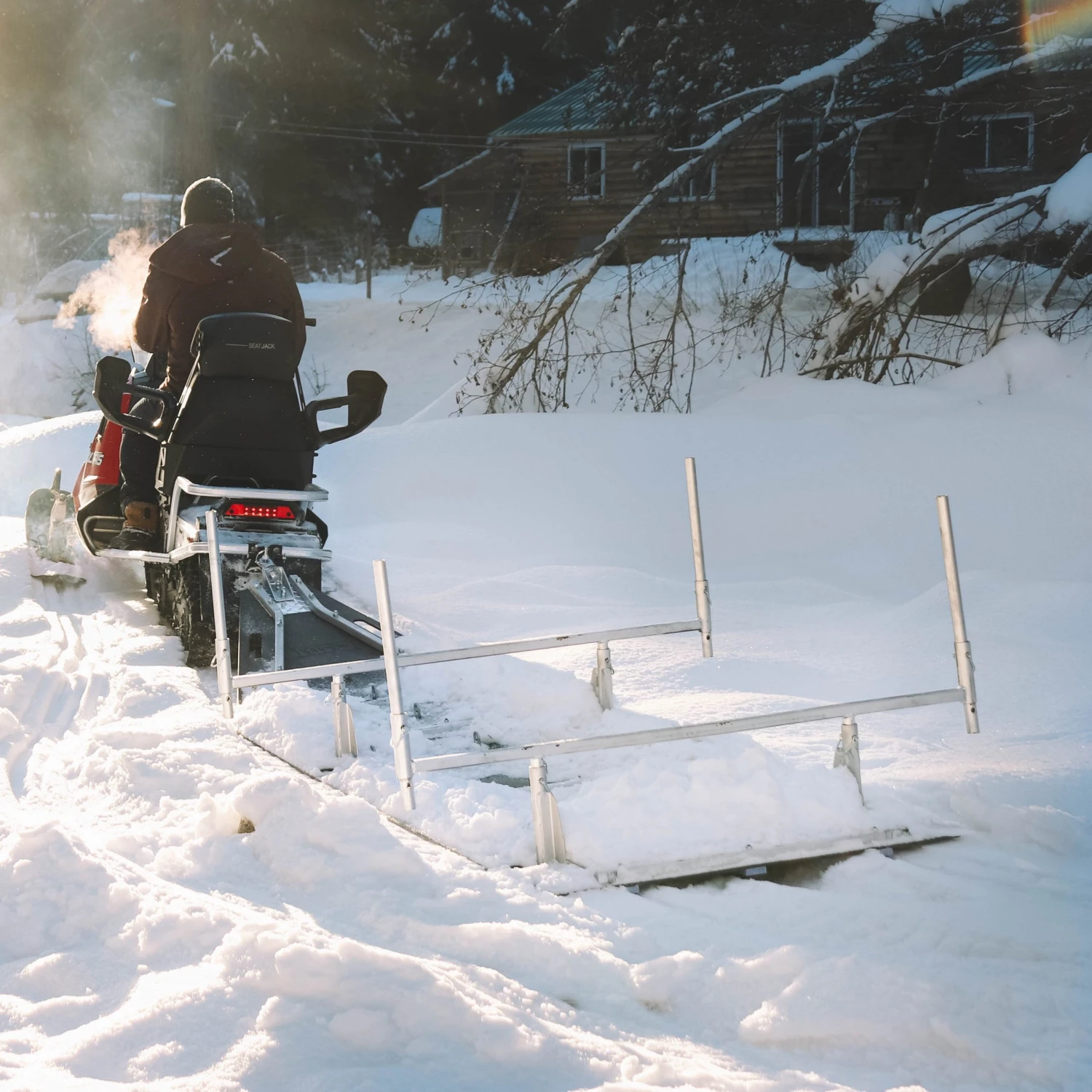 4’x8′ Material Support Rack Set – set of two quick-attach racks. Quickly and easily switch from hauling large logs to towing broken down snowmobiles, generators, supplies, construction materials, and so much more!