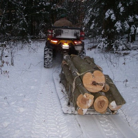 With optional accessories like the 4’x8′ Material Support Rack Set** and the Cargo Box**, the possibilities are endless. These come highly recommended to get the most out of your Xtreme Toboggan. Quickly and easily switch from hauling large logs to towing a broken down snowmobiles, generators, supplies, construction material, and so much more!