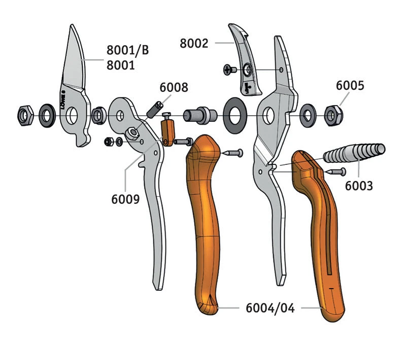- All parts (Blade: LO-8001/B, Anvil (base) with screw: LO-8002, Spring: LO-6003, and Set spare parts in a blister: LO-8007) are individually available and can be easily replaced.
