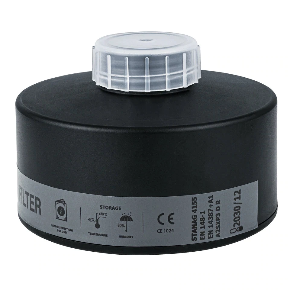 Featuring the same basic characteristics as other MIRA Safety filters, these hydrophobic P3 police gas mask filters have almost 3 times as much activated carbon as competing filters, providing up to 12 hours of rock-solid, reliable protection, even in wet conditions.