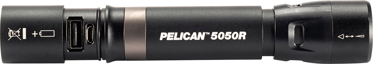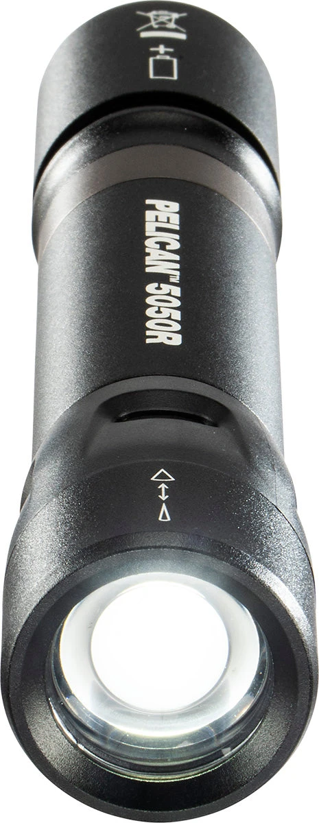 Get local to long distance in a slide. The new Pelican 5050R flashlight features flood to spot technology: Flood position projects a wide beam to illuminate your work area and spot beam for a long distance focused beam.