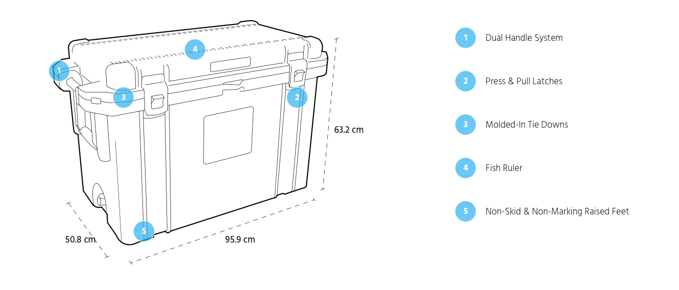 - Up to 10 days ice retention, freezer grade gasket, 2 in polyurethane insulation