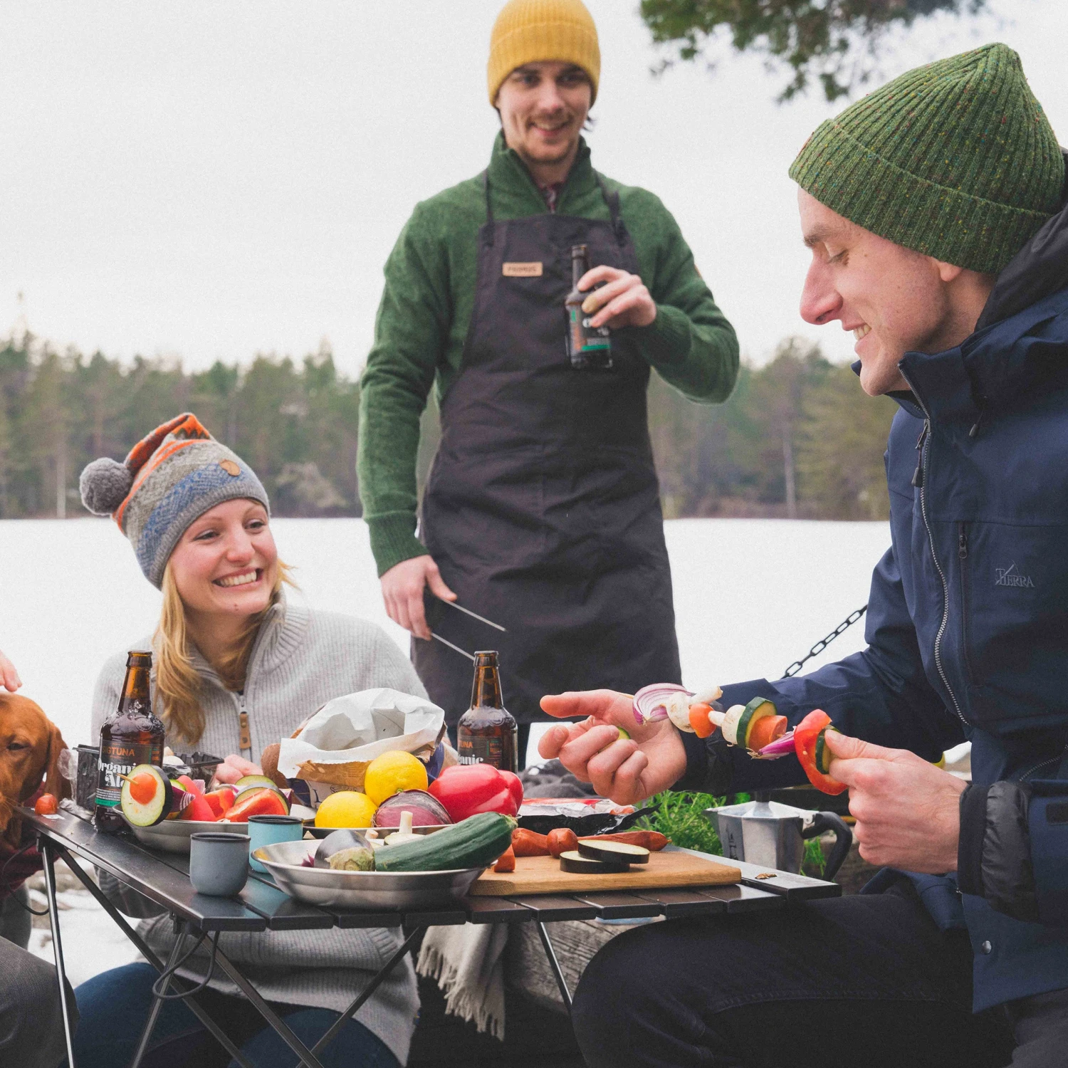 Protect your clothes from grease and soot while showing off for your friends in style. Made from durable G-1000 fabric. Two larger front pockets and one smaller breast pocket for all the essentials you need while cooking. Adjustable belt made of webbing keeps the apron in place. The buckle has an integrated bottle opener in stainless steel.