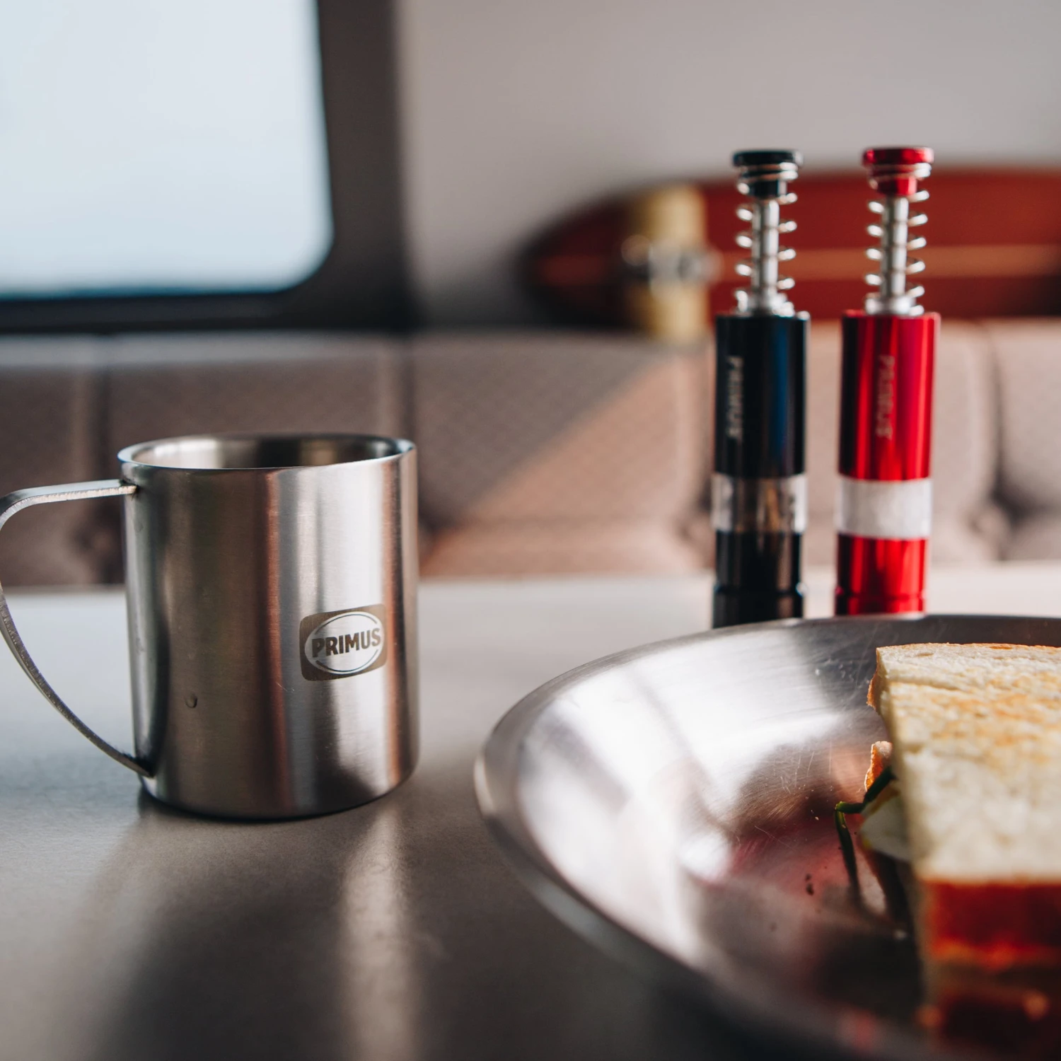 Give your outdoor cooking some extra flavour. A set of a salt and pepper mill made of durable aluminum. Easy to operate with just one hand.