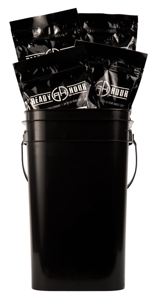 It all comes packed in one of our rugged, slimline buckets (measures 8 x 9 x 13.5 inches) for long-term storage. Your breakfast foods are packaged in heavy-duty pouches with a resealable zipper top. Weighs 12.59 pounds.