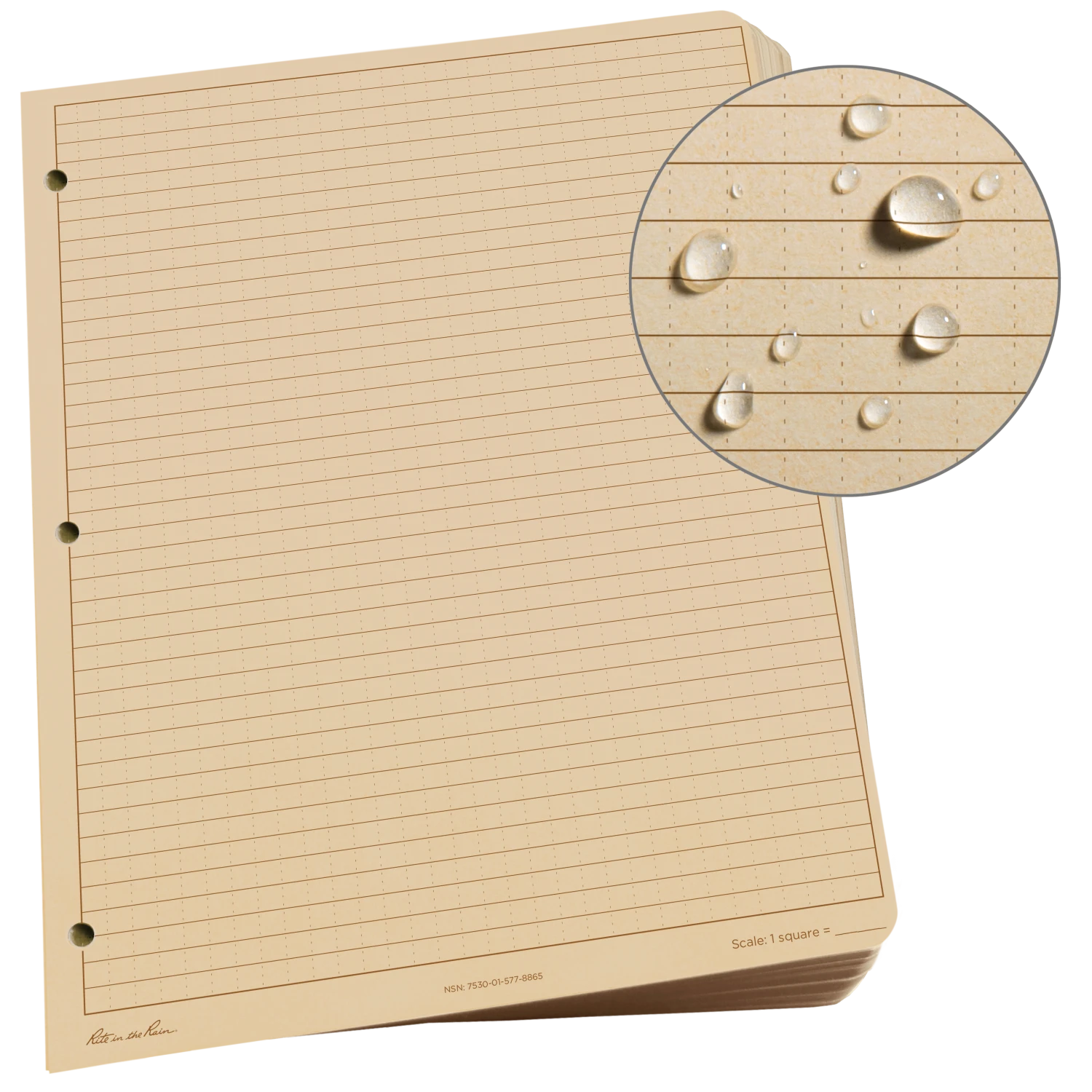 Rite in the Rain Weatherproof Loose Leaf Paper, 8.5 in x 11 in, 32# Tan, Universal Pattern, 100 Sheet Pack
