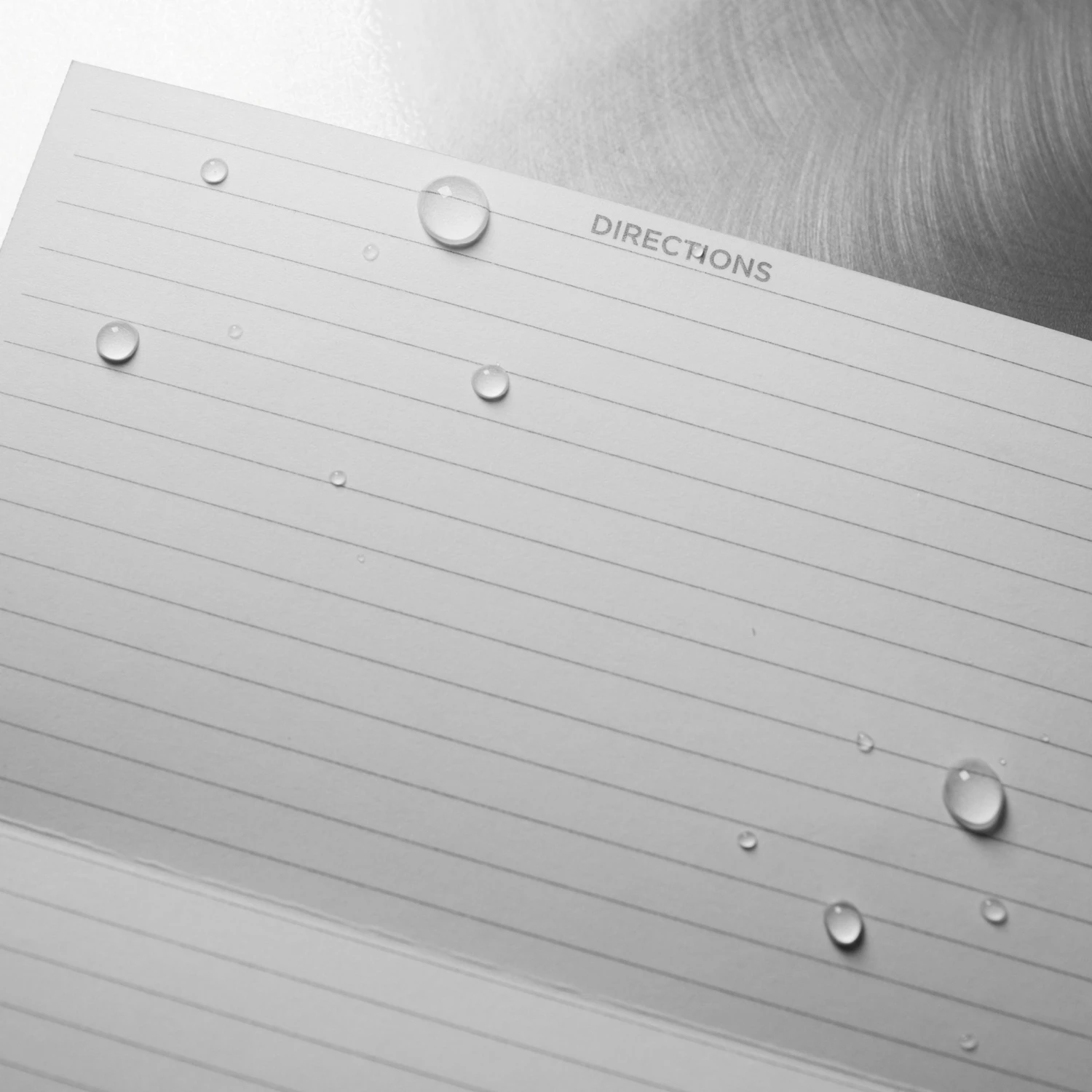 WEATHERPROOF PAPER: 50 Recipes cards per pack. Keep your recipes safe with Rite in the Rain splash-proof paper.