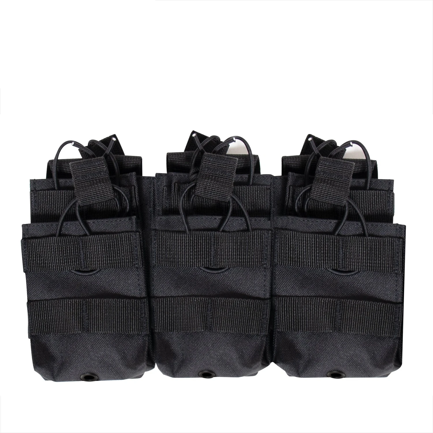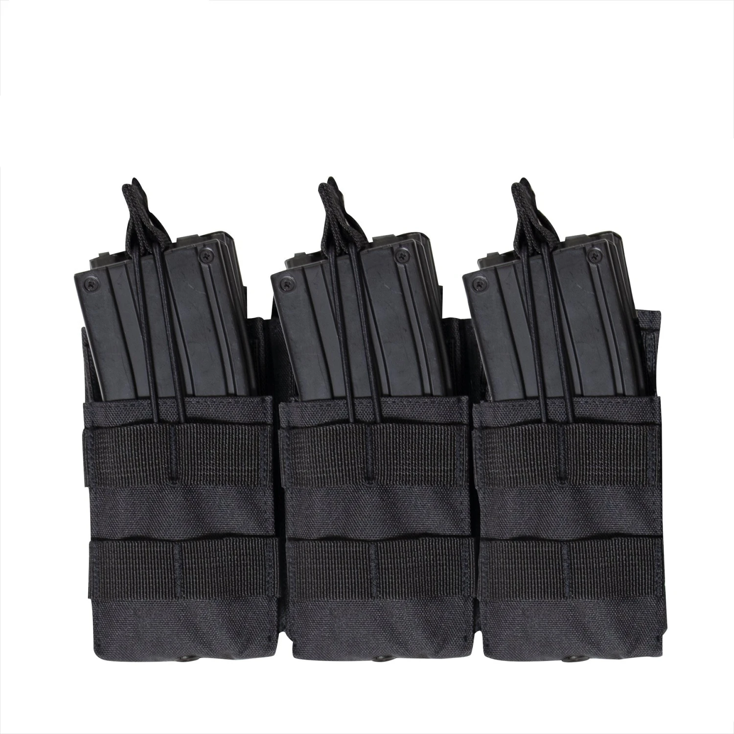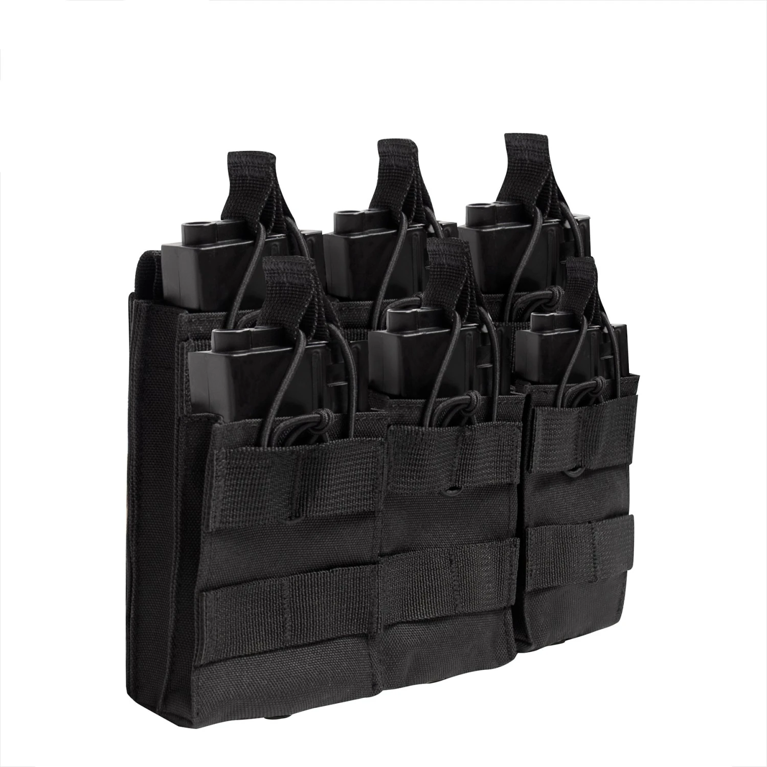 Reloading at the range has never been faster or easier than with Rothco’s MOLLE Open Top Six Rifle Mag Pouch. Elastic bands secure up to six mags in place with easy-grip pull tabs. Designed to fit most popular rifle mags including AK-47 mags, M-16 mags, and more.