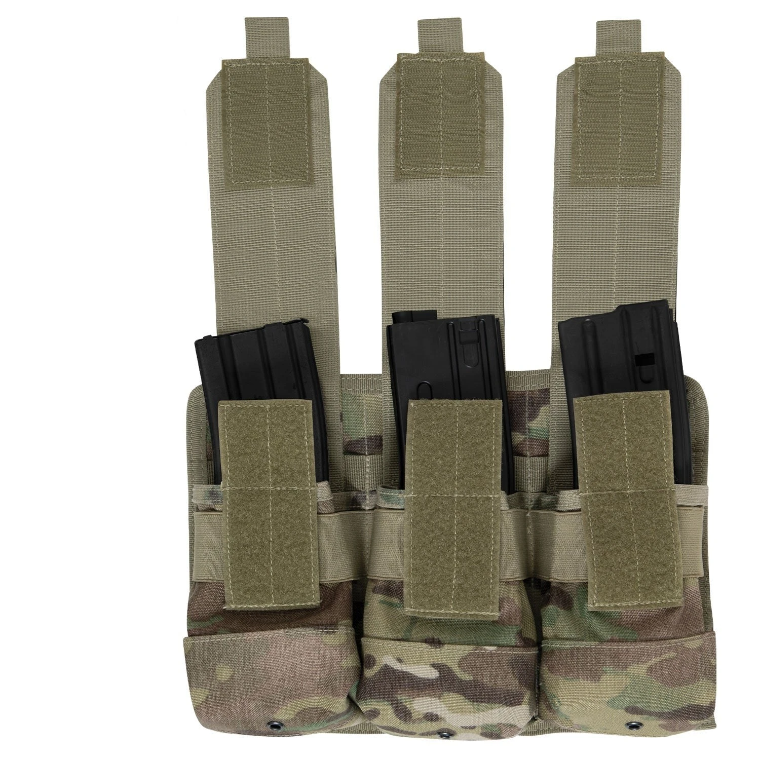 Rothco’s Universal Triple Rifle Magazine Pouch is designed to secure six M-16 mags or three AK-47 mags to provide you with versatility at the range or in the field. Each pocket contains a hook and loop flap closure so you can adjust the length of the flap based on which magazine you are storing. Constructed with long-lasting denier polyester (MultiCam made of denier Cordura nylon), the pouch is designed to withstand the weight of your ammunition.