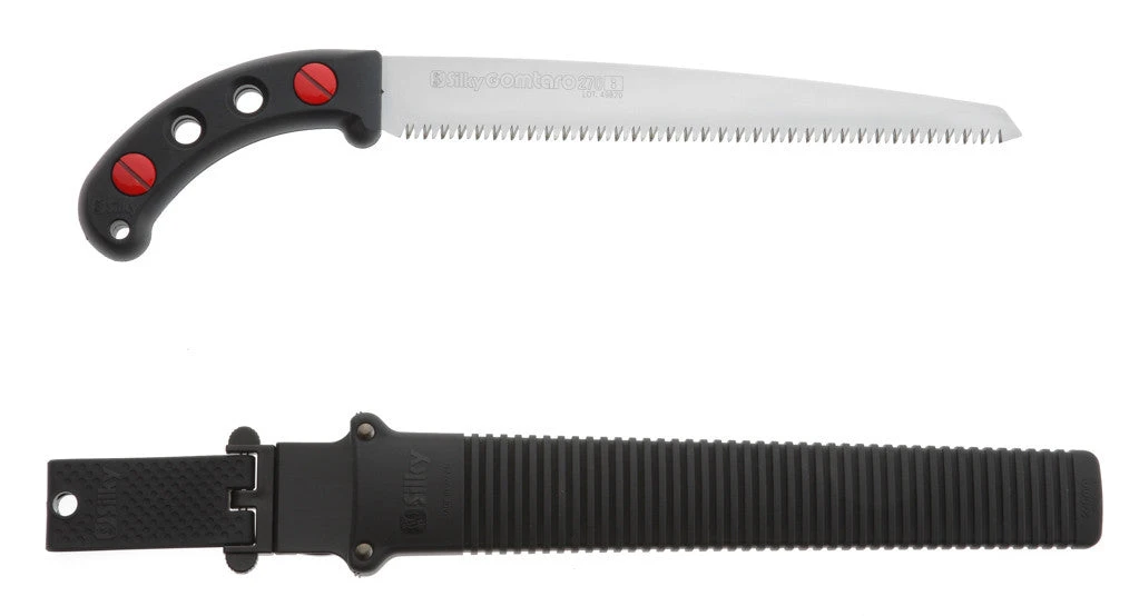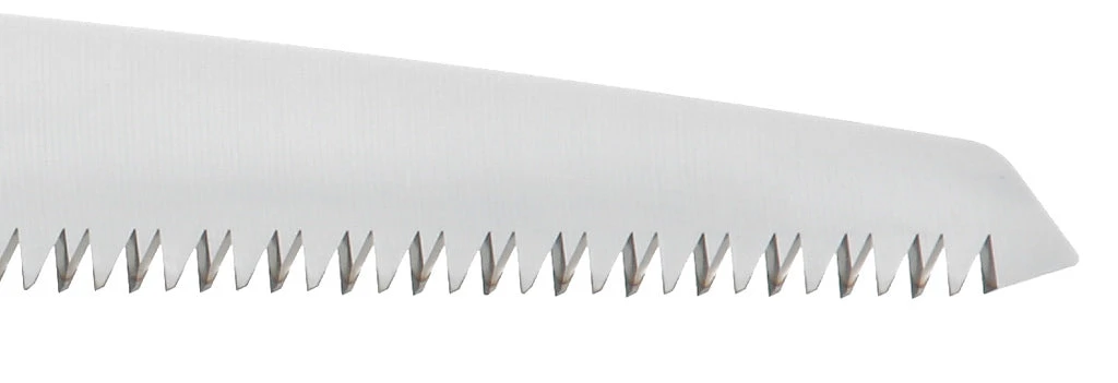 Like the other saws in this line of straight bladed sheath saws the Gomtaro 270 features taper ground impulse hardened teeth that can be as hard and durable as most hand chisels! Well- balanced, the Gomtaro saws all boast a monoconstructed blade, impulse hardened teeth, a super hard chrome plated surface and MIRAI-ME (smooth cutting) technology.