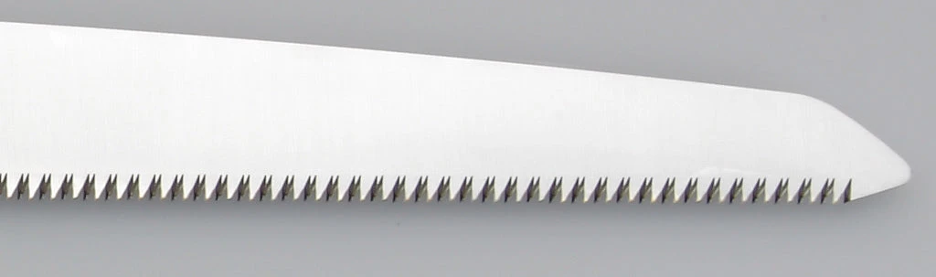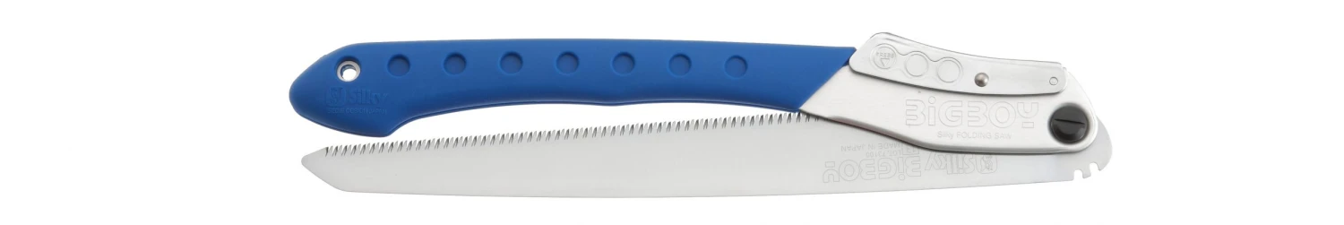 Multi-purpose folding saw with a 14-1/5-inch blade for a greater reach. It is the largest Silky folding saw model. Utilizes proprietary Silky MIRAI-ME (Smooth Cutting) Technology – The Teeth of the Future! The precision-ground, razor-sharp teeth have four cutting angles along the length of the blade and provide fast, clean and smooth cutting action. Long well-balanced taper-ground blade with impulse-hardened non-set tooth design provides extended working reach, faster cutting and handles large limbs and small trunks with no effort. The non-slip two-handed rubberized cushioned handle provides a sure and comfortable grip even in the most difficult operating conditions. It is an ideal multi-purpose folding saw for cutting big jobs down to size. Suitable for cutting bamboo and dry hard wood. Exceptional design, strength, balance and superior finish quality. Comes in a blister pack. Made in Japan. BIGBOY is available in four teeth sizes/configurations (tpi – teeth per inch): 5.5 tpi – Extra Large/Coarse (pruning, green wood), 6 tpi – Large/Coarse (pruning, green wood), 8.5 tpi – Medium (soft wood), and 11 tpi – Fine (hard wood, bamboo).
