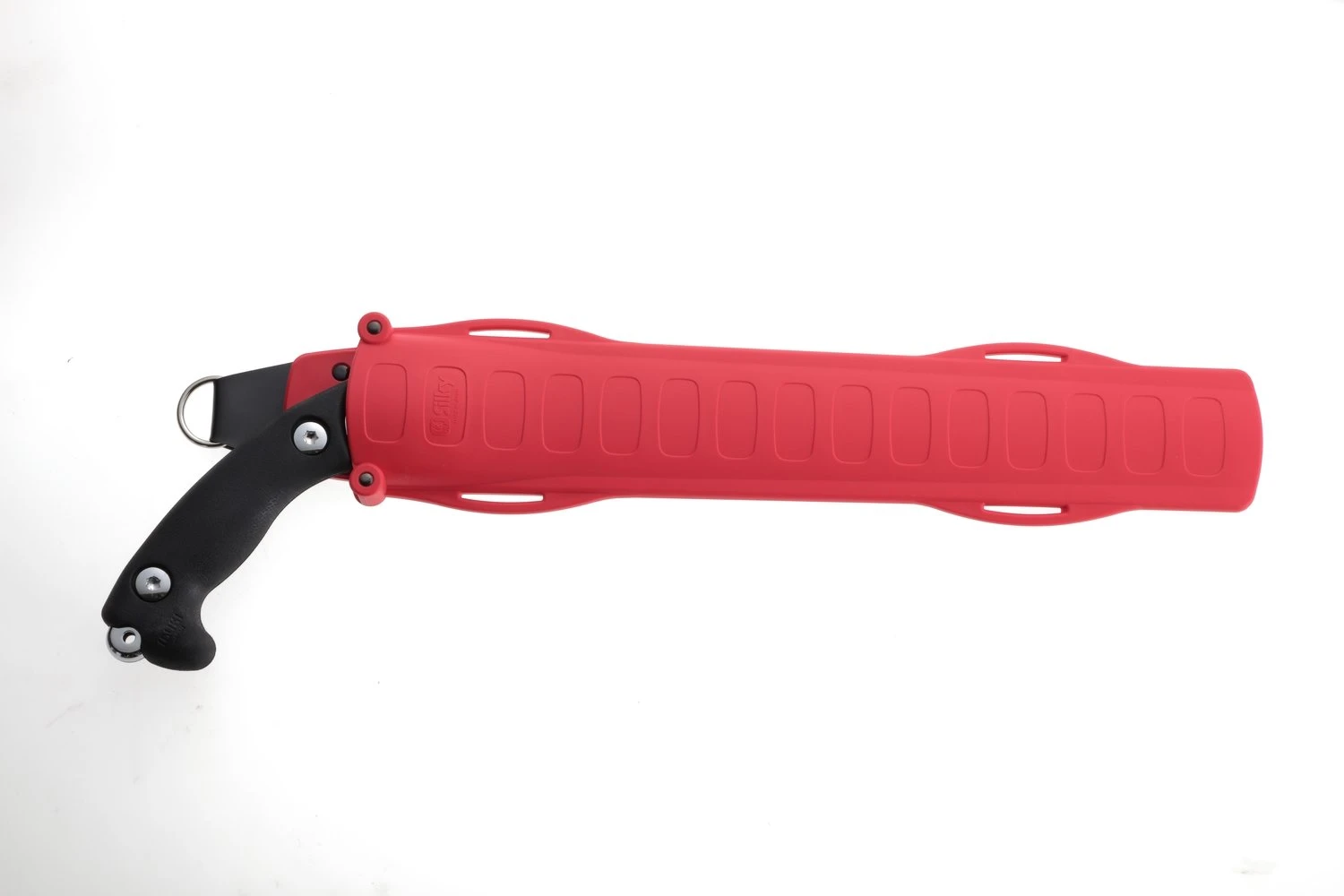 - Custom black polypropylene sheath with ring and belt strap attachments is included