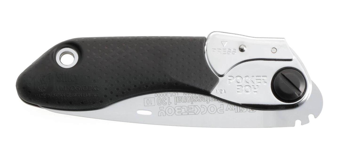 This lightweight multipurpose folder is one of our best sellers worldwide. With a 5 inch long blade and 8.5 teeth per inch the Pocketboy 130 makes short work of light pruning jobs. Precision-ground and razor-sharp electronically hardened teeth provide for quick and smooth cuts. Comes with a plastic flip-lock carrying/storage case. Handle will accept 3 other Pocketboy 130 blades from the Pocketboy series: Large, Fine and Extra fine. (Sold separately.) Made in Japan.