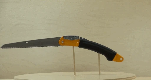 Amazingly durable folding saw with a straight blade. Sturdy and lightweight aluminum chassis. Easy-grip rubber handle.