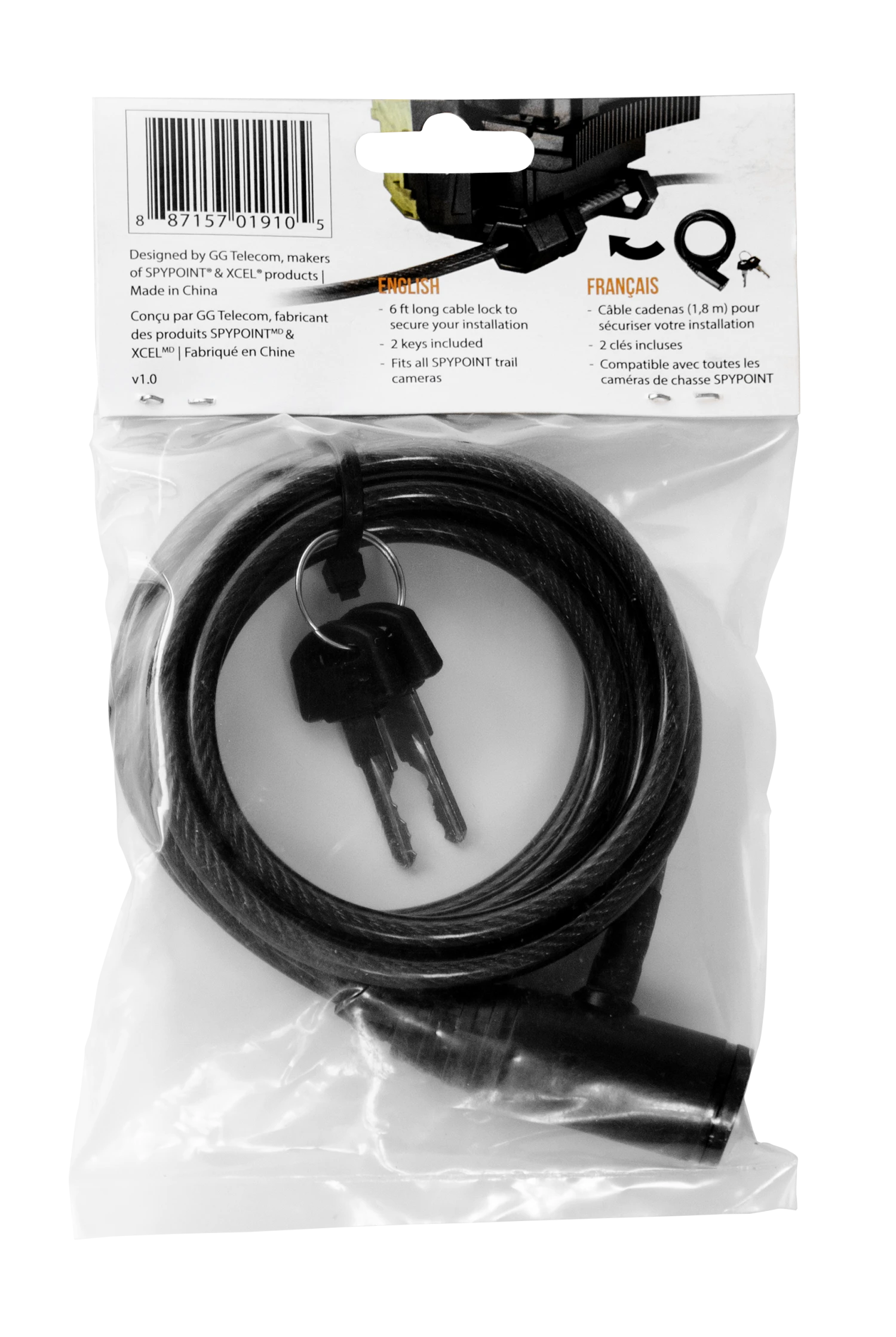 6 ft cable lock fits all SPYPOINT cameras.