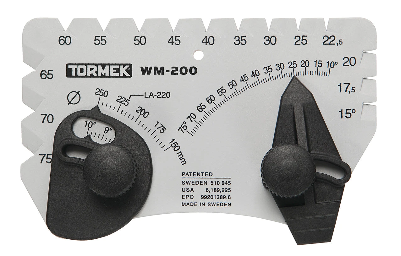 The AngleMaster is designed to work on any grindstone diameter from 250 mm (10″) down to 150 mm (6″). You achieve an exact setting irrespective of the degree of stone wear.