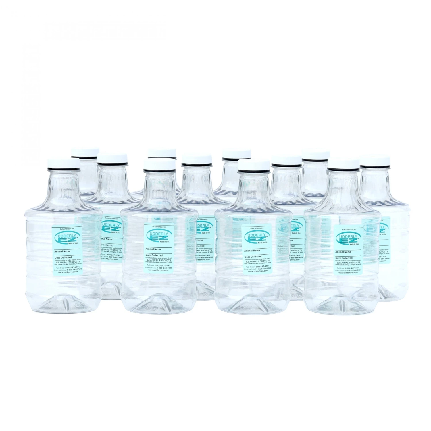 Udderly EZ Quart bottles. Will work with any Udderly EZ Milker kit. Comes with twelve quart size collection bottles, o-rings, and caps.
