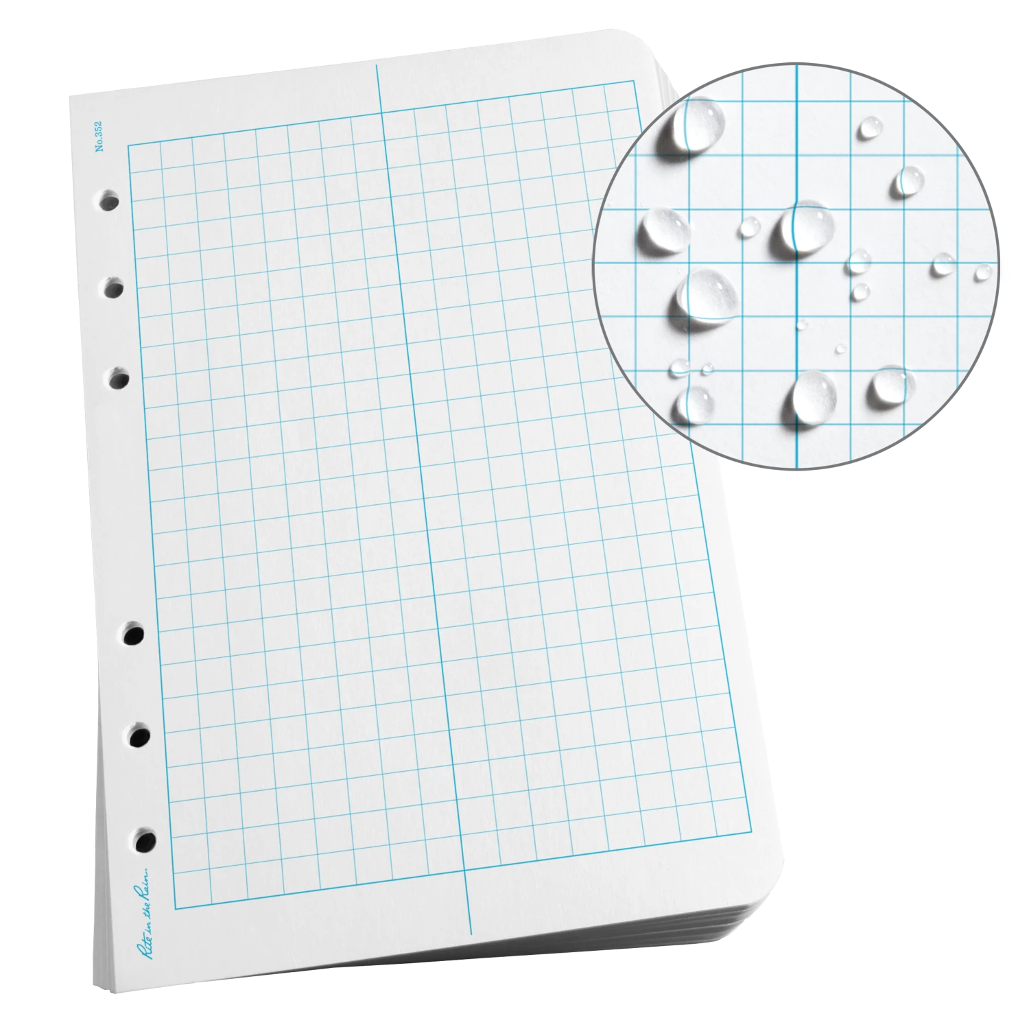 PUNCH STYLE: Rite in the Rain’s 4.625 in x 7 in Loose Leaf uses the Franklin Covey ‘compact’ 6-hole punch design to fit any Rite in the Rain Ring Binder.